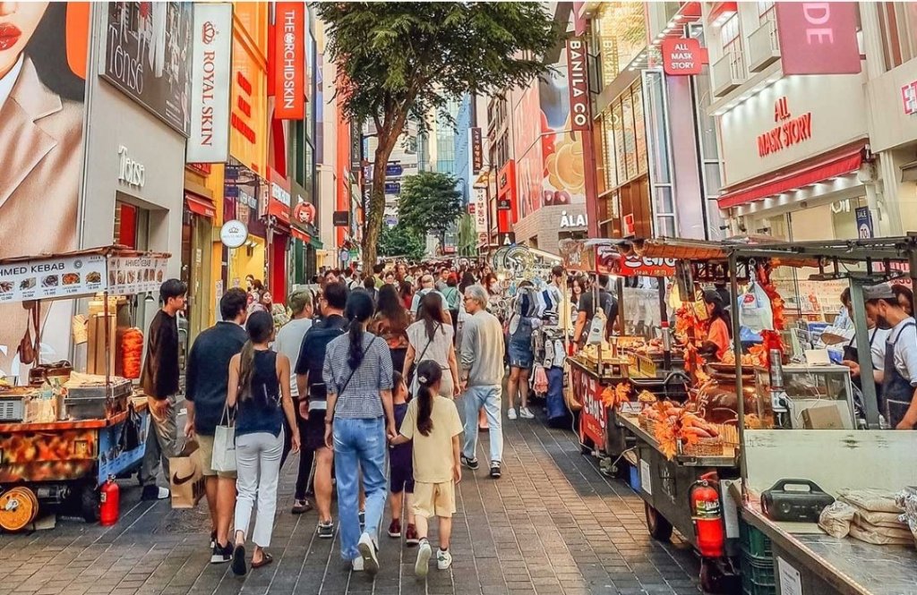 Myeongdong to jedna z najbardziej znanych dzielnic handlowych w Seulu, słynąca z ogromnej liczby sklepów, restauracji, butików i ulicznych straganów oferujących najnowsze trendy mody, kosmetyki oraz pamiątki. Jest to miejsce, gdzie można znaleźć zarówno luksusowe marki, jak i lokalne produkty, szczególnie kosmetyki koreańskie, które przyciągają turystów z całego świata. Dzielnica tętni życiem zarówno w dzień, jak i w nocy, oferując również bogatą scenę street foodu, gdzie można spróbować tradycyjnych koreańskich przekąsek.